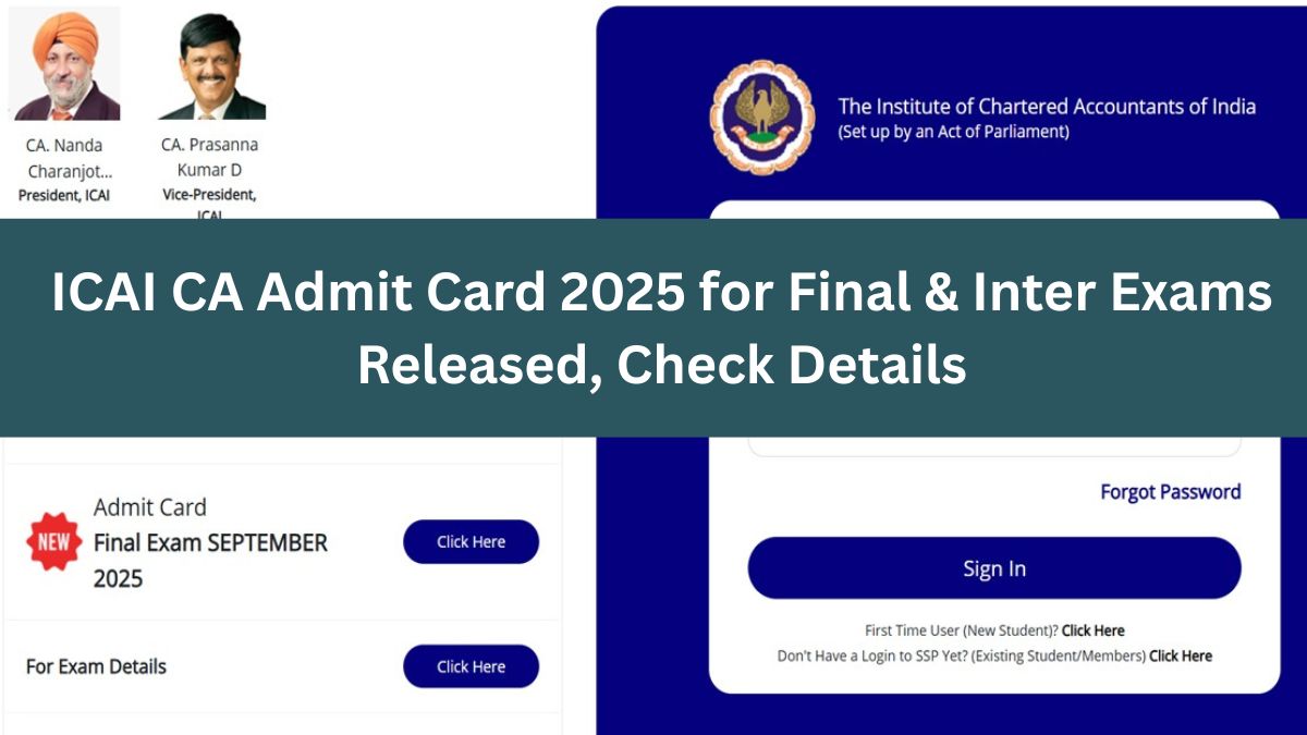 ICAI CA Admit Card 2025 for Final & Inter Exams Released, Check Details