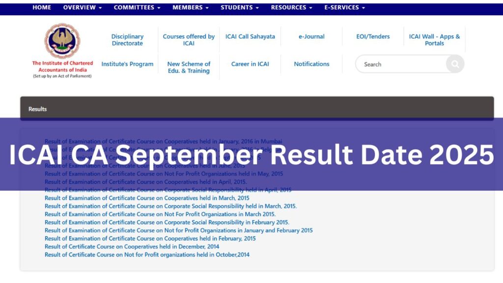 प्रश्न 1: ICAI CA September Result 2025 कब जारी होगा?